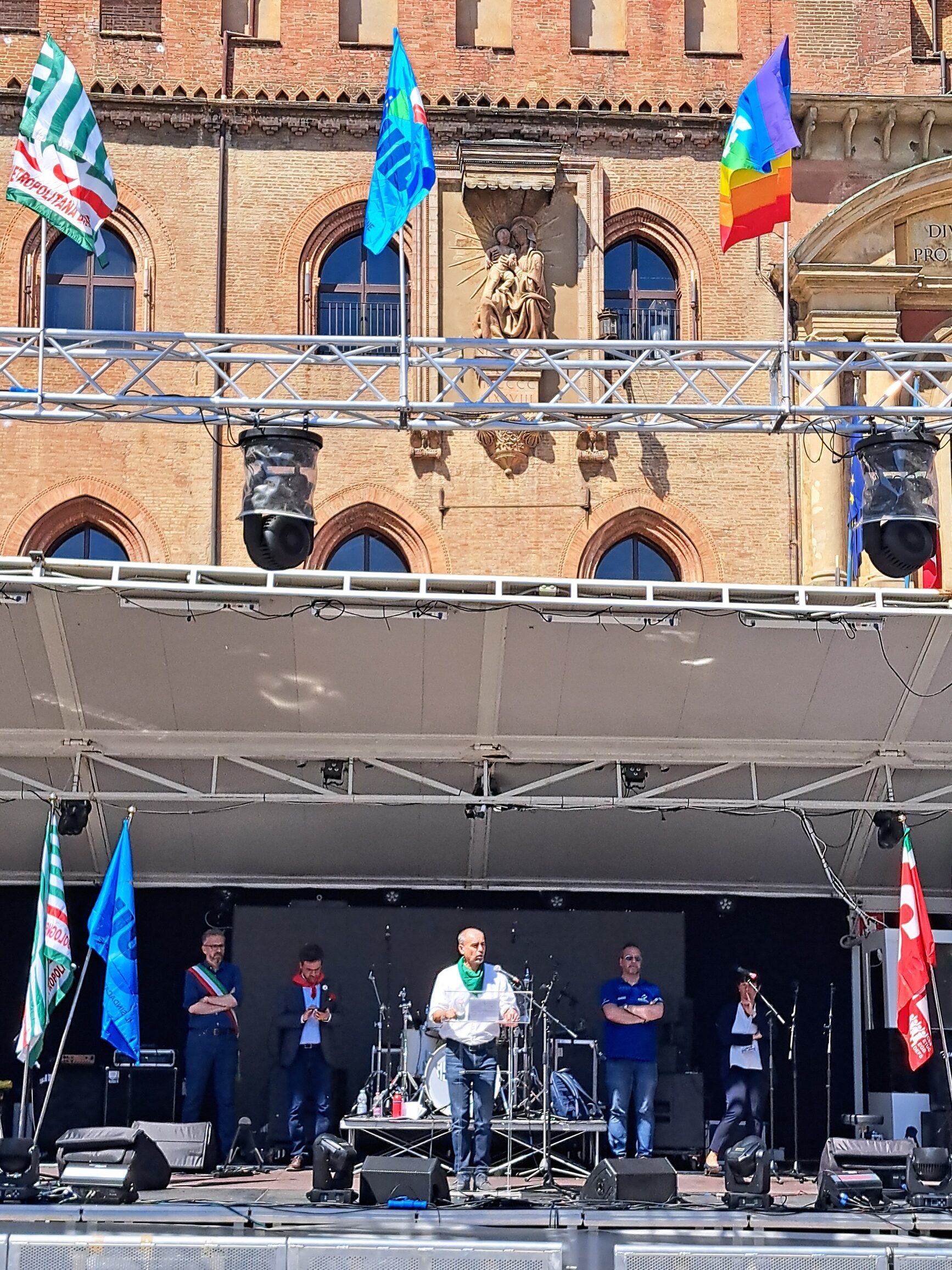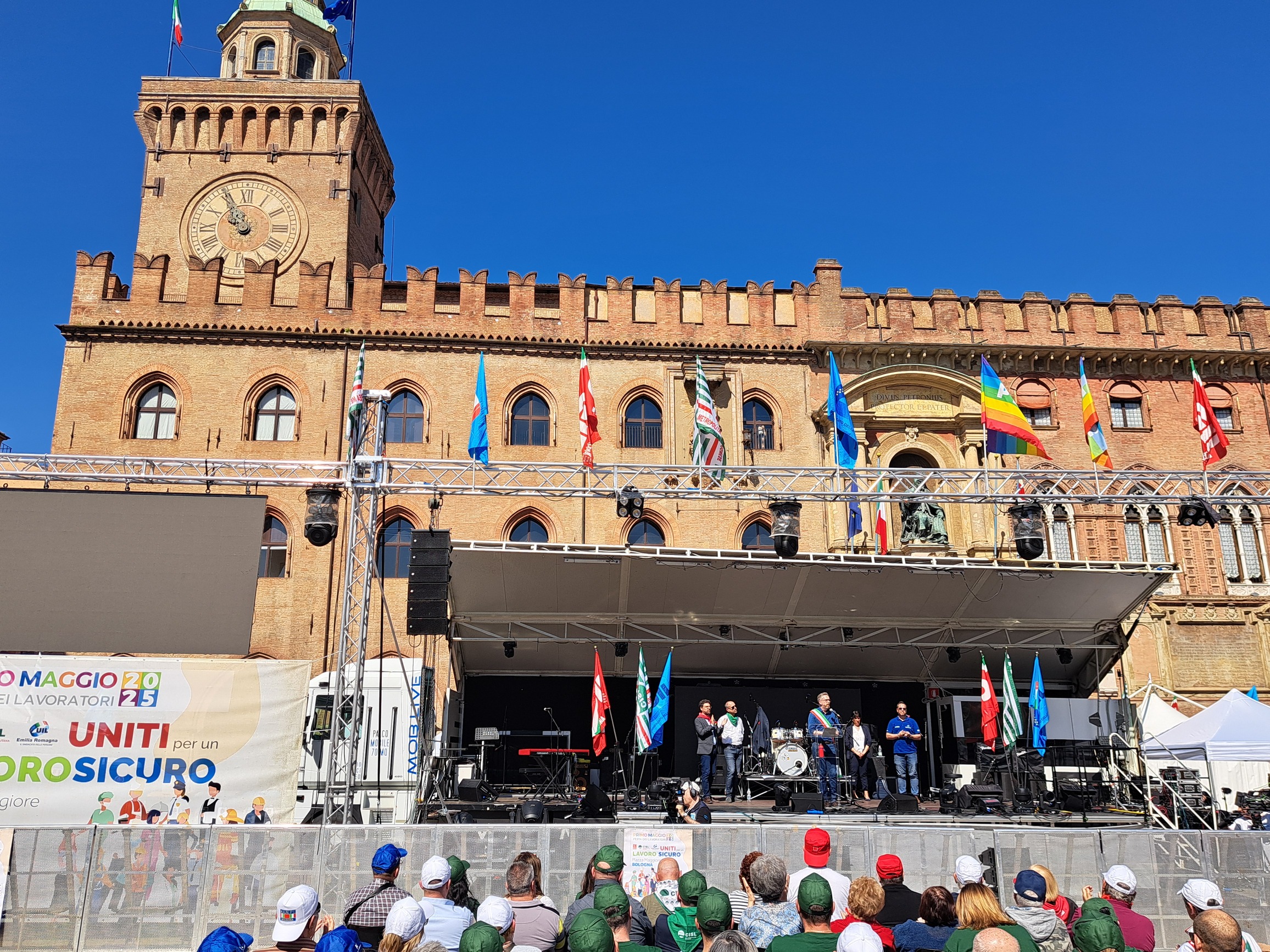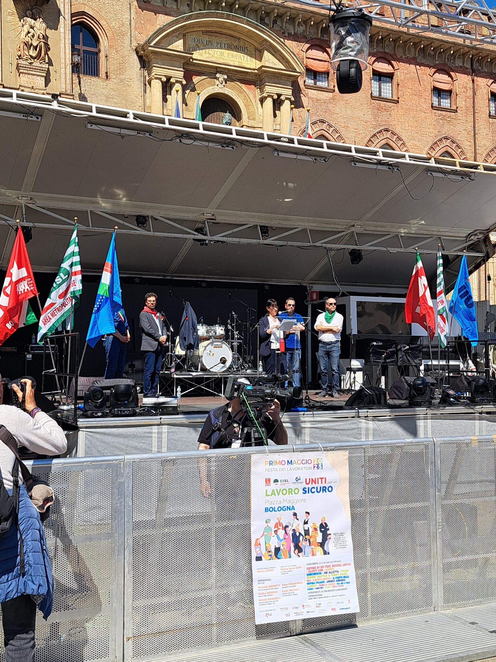 “Uniti per un lavoro sicuro” è lo slogan nazionale scelto per celebrare il Primo Maggio che come ogni anno, a Bologna, si è celebrato in piazza Maggiore. Sul palco oltre ai segretari generali di Cgil, Cisl e Uil Bulgarelli, Bassani e Borghetti, Monica Michielin mamma di Mattia Battistetti e un contributo video di Paula Pawlikowicz compagna di Lorenzo Cubello.  Ha portato un saluto  il sindaco di Bologna e metropolitano Matteo Lepore.